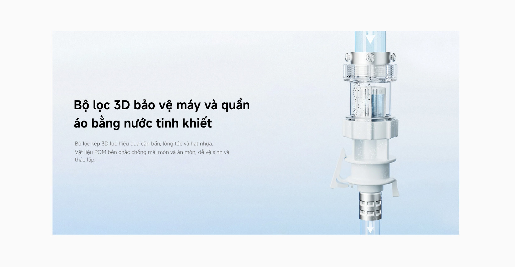 Vật liệu POM cao cấp có độ bền vượt trội, chống mài mòn và ăn mòn, đồng thời dễ dàng tháo lắp, vệ sinh, giúp duy trì môi trường giặt luôn sạch sẽ và an toàn cho sức khỏe cả gia đình.