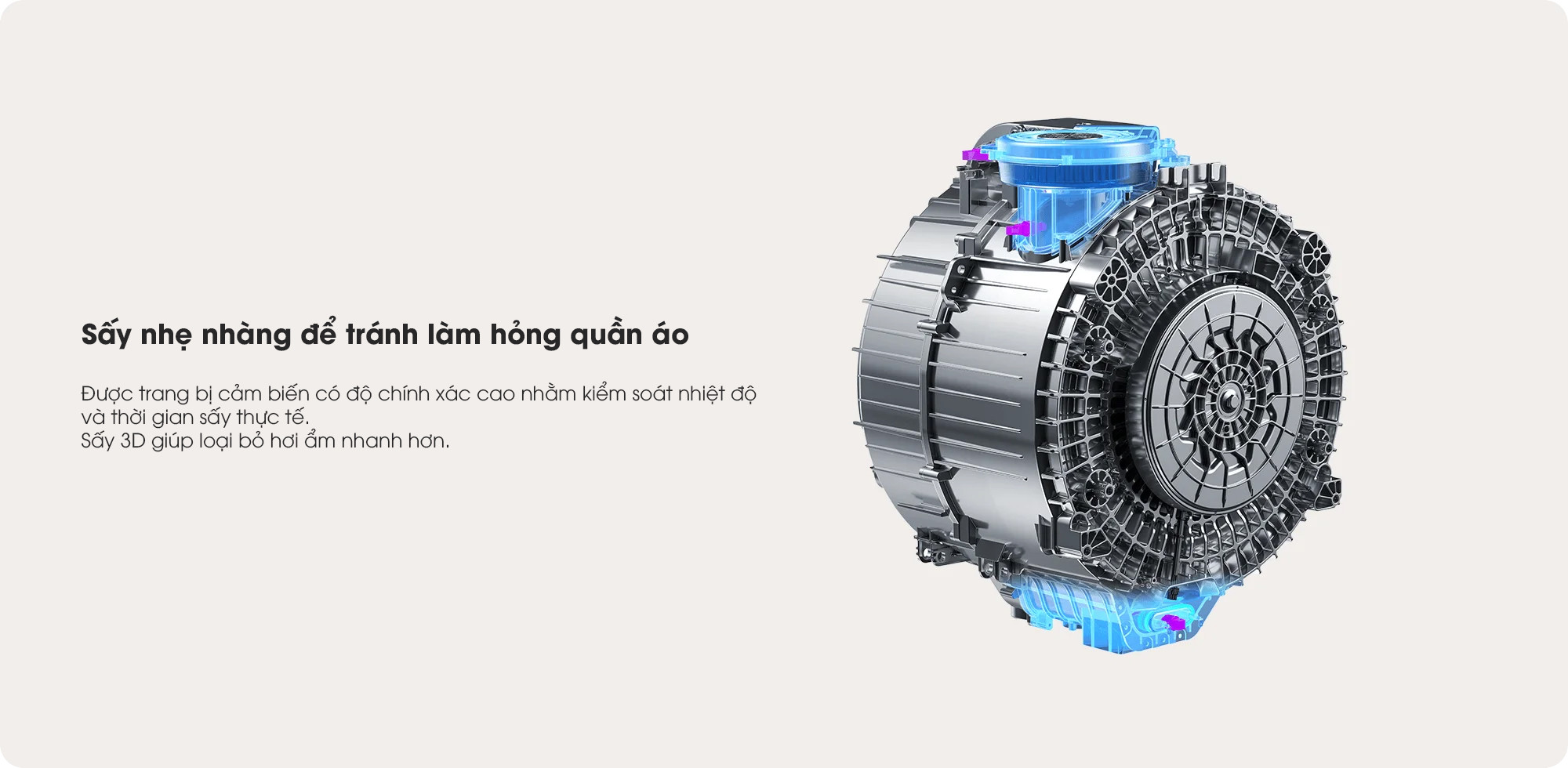 Sấy nhẹ nhàng, bảo vệ quần áo tối ưu